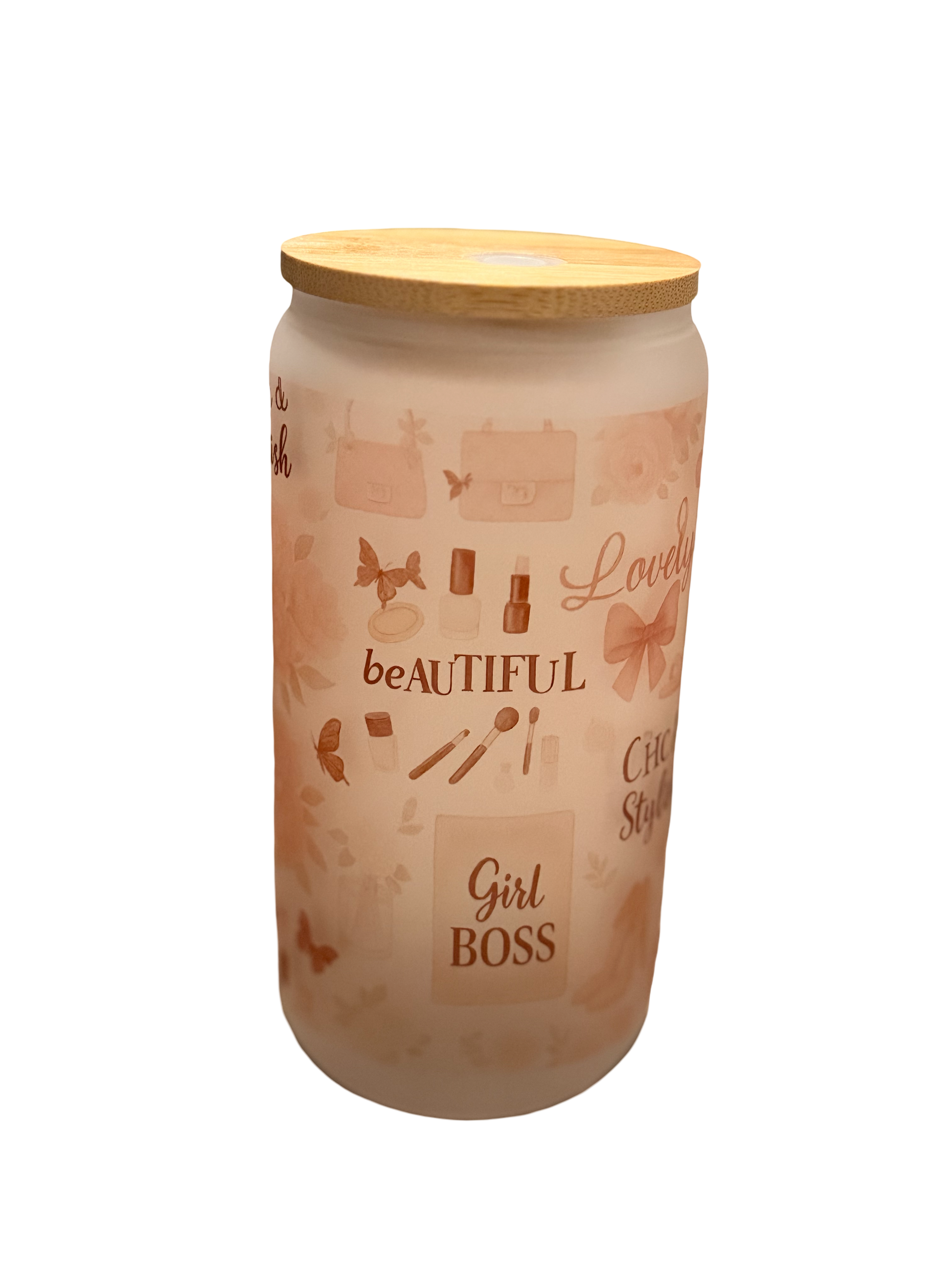 Featuring soft blush tones, makeup and fashion icons, and empowering words like “beAUTIFUL” and “Girl Boss”, this chic glass is your go-to for your daily affirmations and caffeine boost. Whether you’re creating, leading, or manifesting — this glass keeps you inspired, polished, and in your soft CEO era.